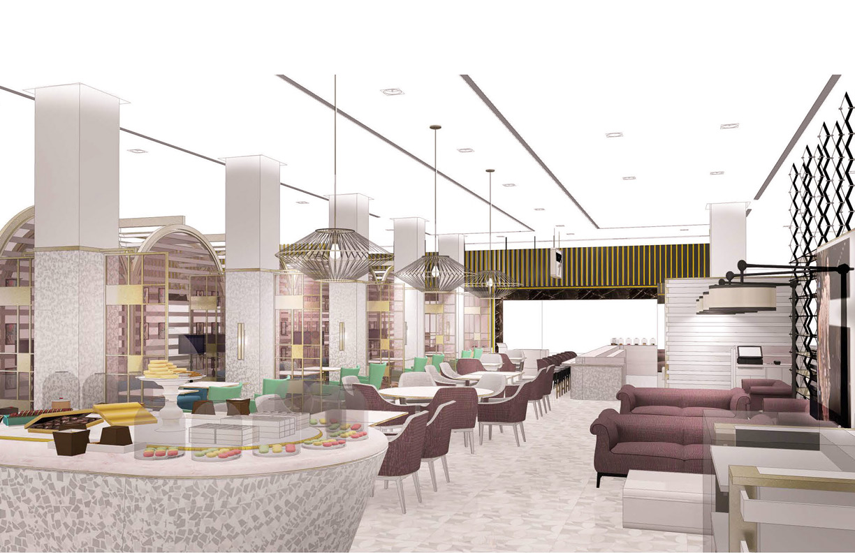 Proposed renovation concept of Vogue Cafe at Level Shoes, Dubai Mall